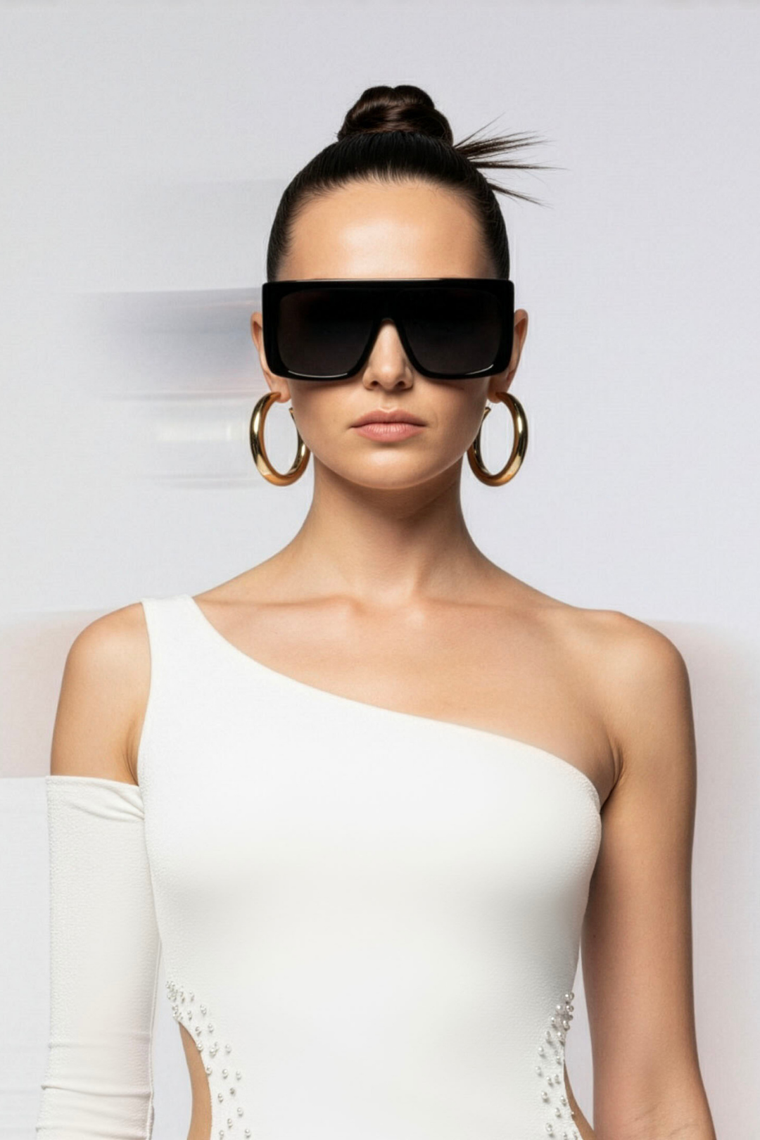 • One sleeve, white pearl detailed and lined.